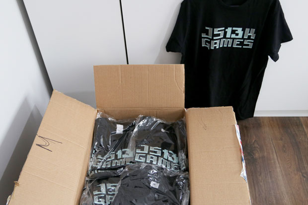 The js13kGames t-shirts were finally printed and shipped (yay!). Even though I tried to keep an eye on every aspect of it, the printing house managed to print the t-shirts… on a wrong material. The t-shirts were suppose to be cheaper than in 2018 because of the discount I got for the printing house’s fail last year, but they were even more expensive because of the “better” material I didn’t want. Apparently I expect too much when I want to have stuff done in a certain way…