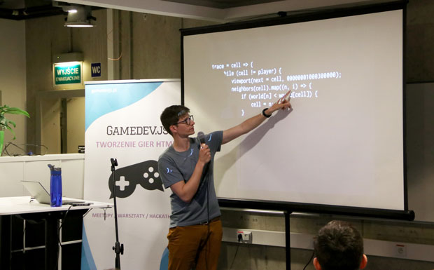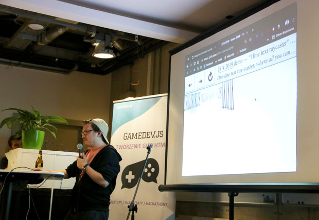 The third talk was Staś Małolepszy explaining how did he manage to squeeze a playable Heroes of Might and Magic 3 tribute in just 1 kb of JavaScript for the js1k competition.