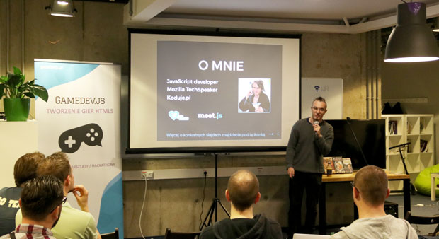 First talk was given by Wojtek Połowniak, a meet.js Warsaw co-organizer and new addition to the Mozilla Tech Speaker family (now there’s two of us in Poland). He talked about accessibility in games.