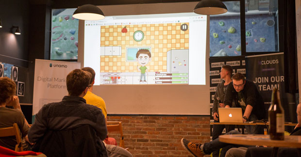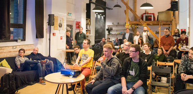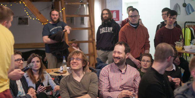 I suppose they just shifted focus towards the casual part of our meetup: when I said “that’s it, the talks are over” nobody moved for a few seconds. After that they casually started talking with each other, getting more drinks or finding good place to sit again. We had at least an hour of fruitful conversations between the attendees, which feels super awesome. I know our community is small and making HTML5 games is a niche, but it feels damn great to see a positive atmosphere when we meet.