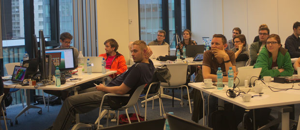 Sunday was the hackathon day - this time we ended up with 24 developers split into 9 different teams, eager to spend 8 hours to create HTML5 games on the given theme, which was obstacles. We teamed up with KM Torso - they were offering some small cash prizes for the games that could be acquired for their platform.