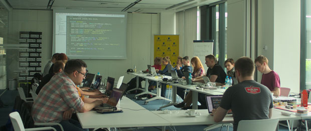 It all happened during the weekend of May 6-7th in Warsaw in the Aviva office space, and we were supported by Mozilla. The attendees had the snacks and soft drinks covered, pizza for lunch and a few beers during the after party which happened when the hackathon ended.