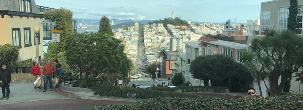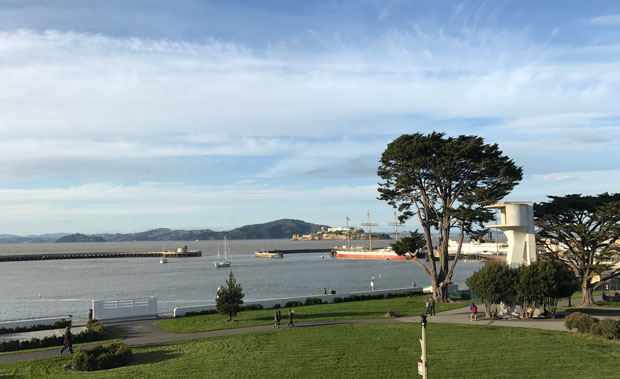 We went down Lombard Street, drove through Golden Gate Bridge and ate steaks looking at the Alcatraz out the window.