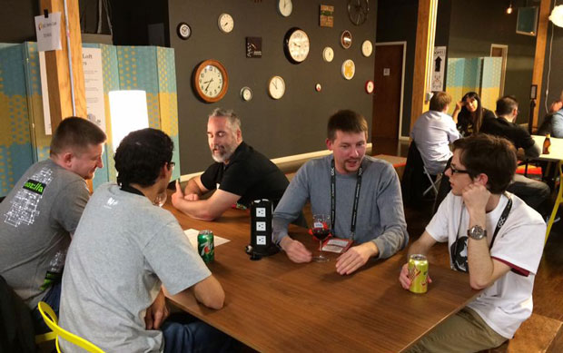 This time the concept of the evening was a little bit different - there were tables themed about different aspects of HTML5 game development like technical (where we were), business or design. Mentees could then join the discussion they were most interested about.