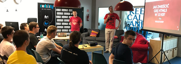 We did something brand new this year - organized launch party for the js13kGames competition, as part of the Gamedev.js meetups in Warsaw.
