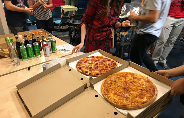 After that we went with another novelty: a quick quiz (using Kahoot) about the competition with some cool swag to give away. It was followed by the last stop in the schedule - pizza and drinks.