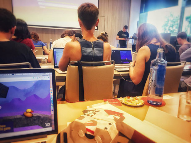 I’m quite sure it was the best workshop I did given the feedback from the participants. Many of them approached me afterwards to say thank you, ask questions, or discuss ideas. Some devs needed only a few hours to modify our workshop materials to make new games, and post cool gifs on Twitter, which was awesome to see.