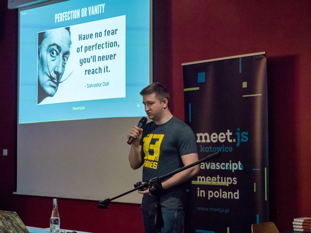 I have to admit that most of the heavy lifting was done by the Meet.js Katowice organizers (Jakub Synowiec, Szymon Nowak, Jacek Rzeszutek) as they basically “just” had a regular meetup number 30 with the gamedev theme, hence Gamedev.js involvement. The only part I was covering was the content - two presentations that night.