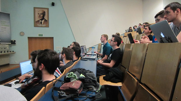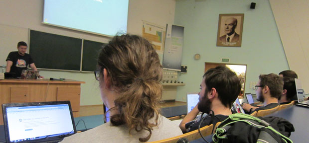 It was suppose to be a regular workshop for up to 20-30 people, but after it was announced the interest among the students was so big that we ended up with 80, and organized it in the lecture hall. I’ve adjusted the materials - I couldn’t interact with the participants 1-on-1 directly, so I cut the tasks and open questions in favor of having live coding session while I explain everything.